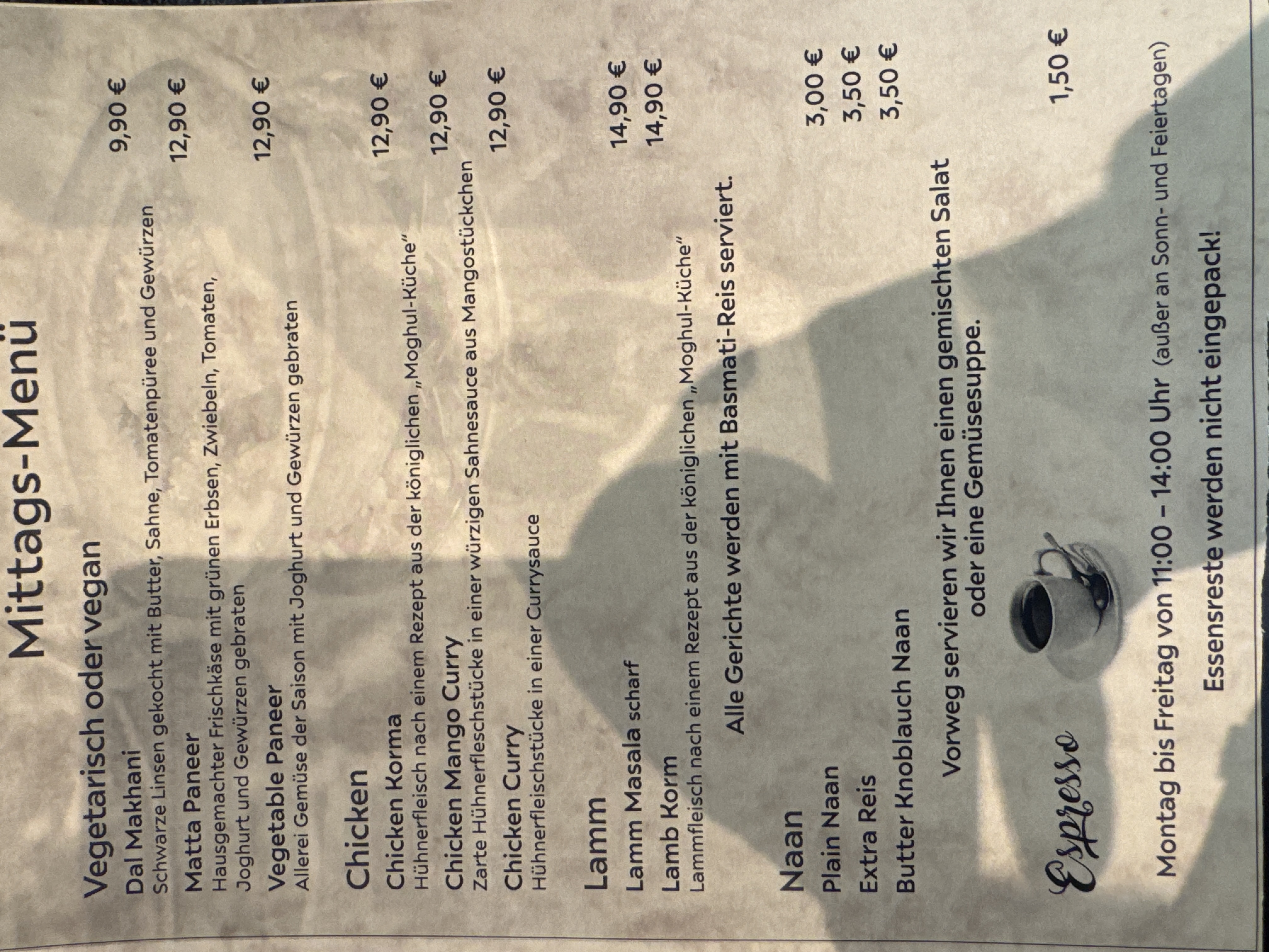 Willkommen im Restaurant Tandoori Mehfil im schönen Rheinfelden. Wir freuen uns darauf, Sie als Gast begrüßen zu dürfen! Wir bieten Ihnen köstliche Gerichte der indischen Küche. Unsere besten Köche bereiten leckere, gesunde und traditionelle Gerichte zu. Unser schmackhafter Fisch, unser Salatbuffet, unser Curry und unser gesundes Essen erwarten Sie! Bringen Sie Ihre Freunde und Familie mit und genießen Sie unsere köstlichen süßen Desserts. Wir gehen auf Ihre individuellen Ernährungswünsche ein und bieten eine Auswahl an laktosefreien, veganen und vegetarischen Optionen. Erfrischendes Bier, Wein, Kaffee und Tee runden Ihr Essen ab. Lehnen Sie sich entspannt zurück und genießen Sie Mittag- und Abendessen in unserem exquisiten Restaurant.